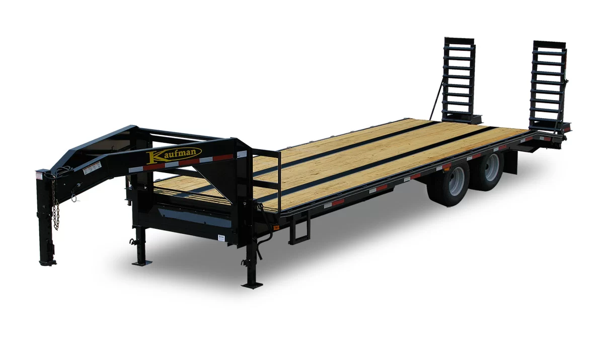 A gooseneck flatbed trailer features a raised neck that attaches to a hitch in the truck bed, providing greater stability and weight capacity. It’s ideal for hauling heavy or oversized loads safely and efficiently.